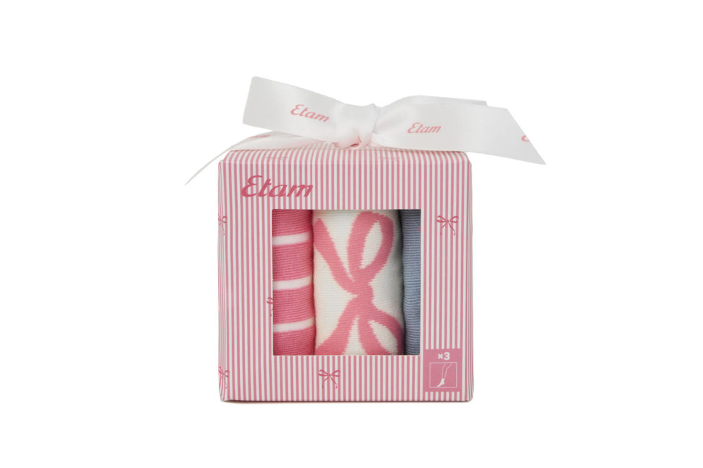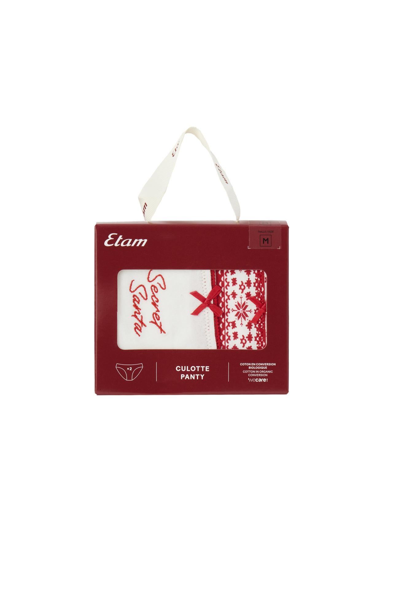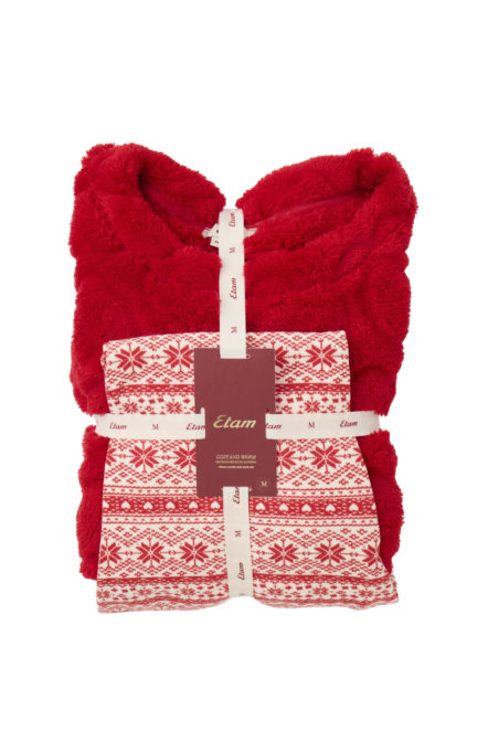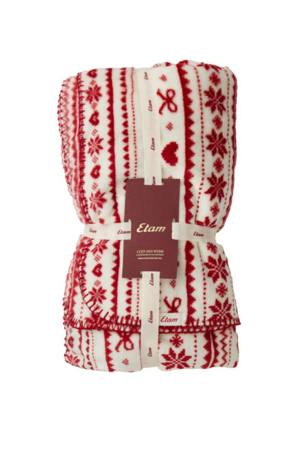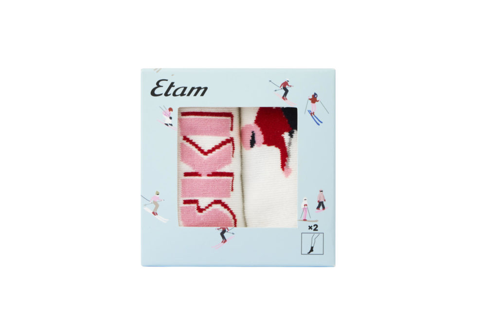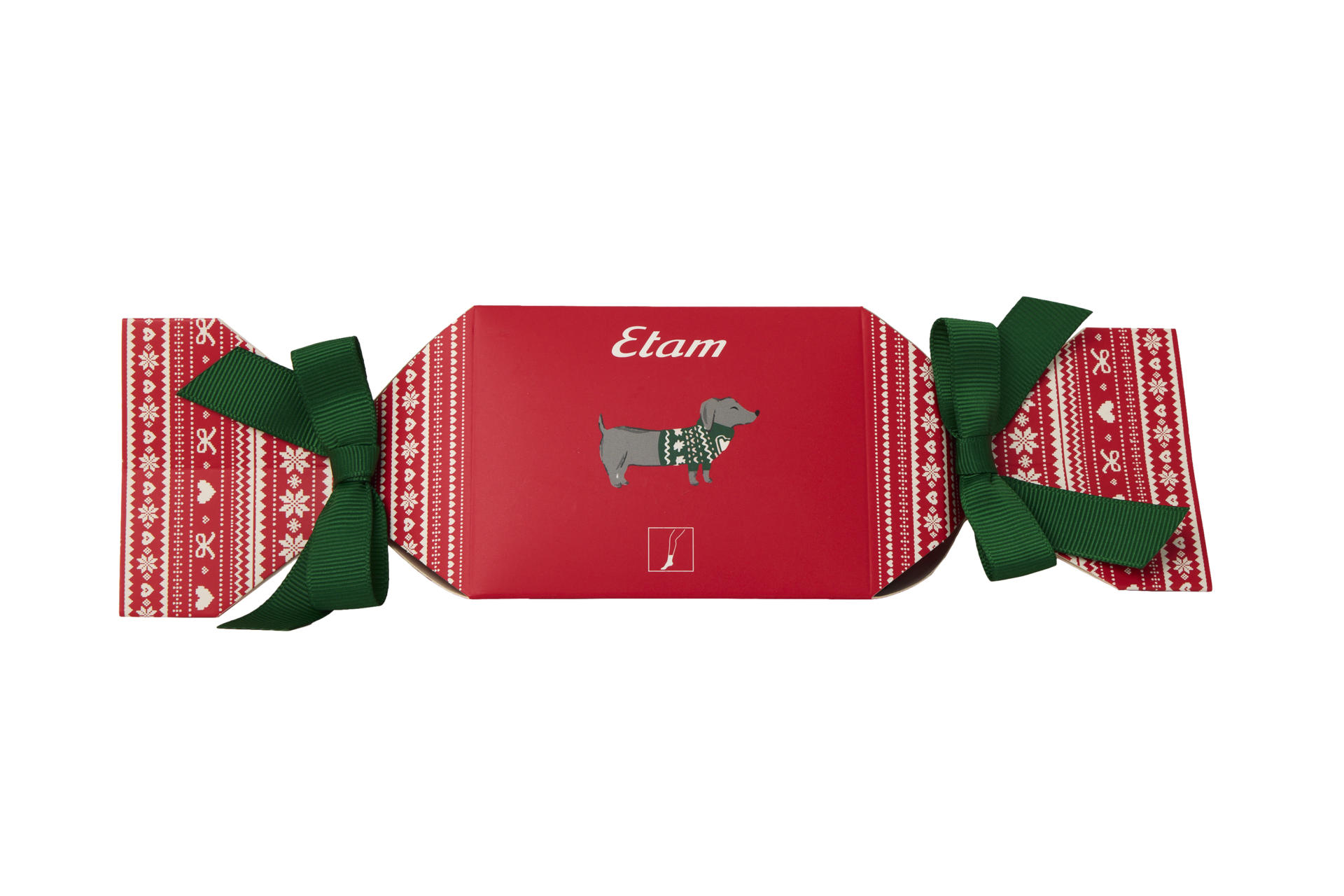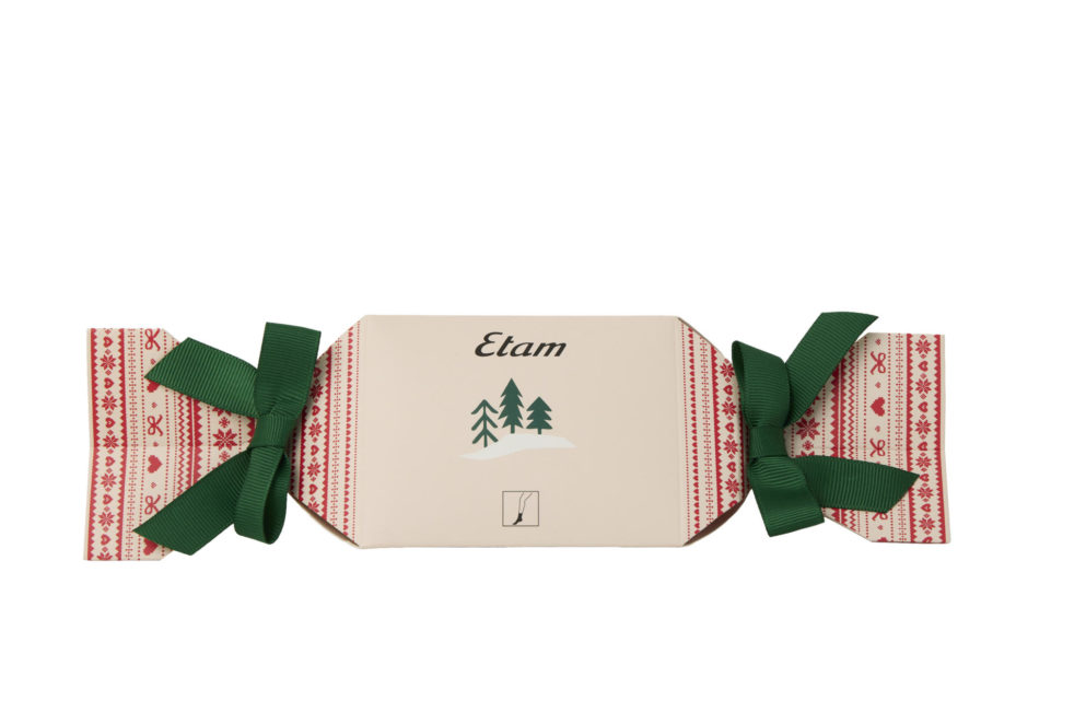 ETAM-XMAS MORNING-JACQ-CHAUSSETTES-IMP ROUGE FD ECRU-AH25