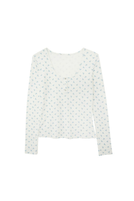ETAM-SWEET NIGHTS-LAPONY-TSHIRT ML-BLANC IMP NOEUDS-AH25