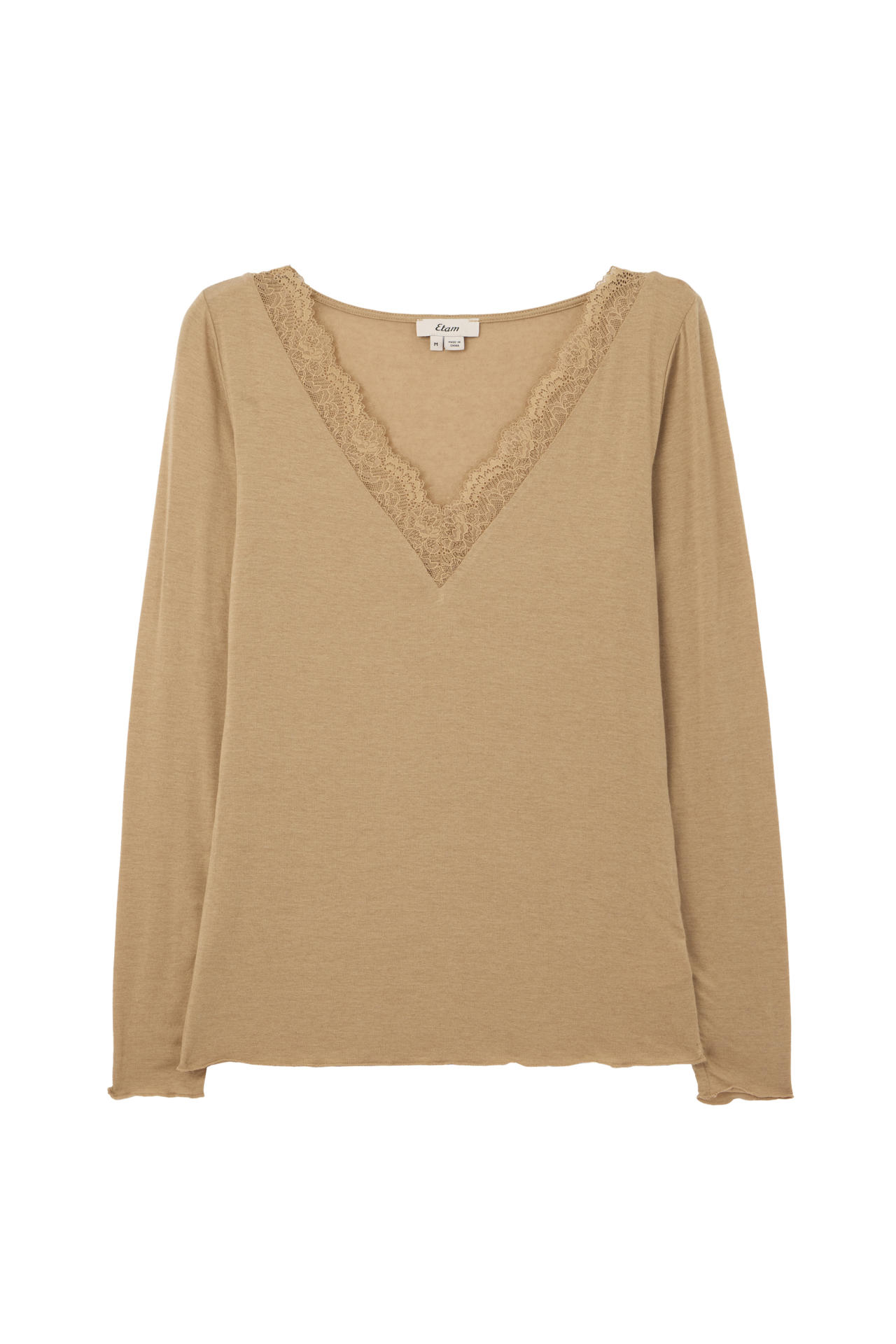 ETAM-WARM ME UP-TSHIRT ML-COL BATEAU-KAKI-AH25