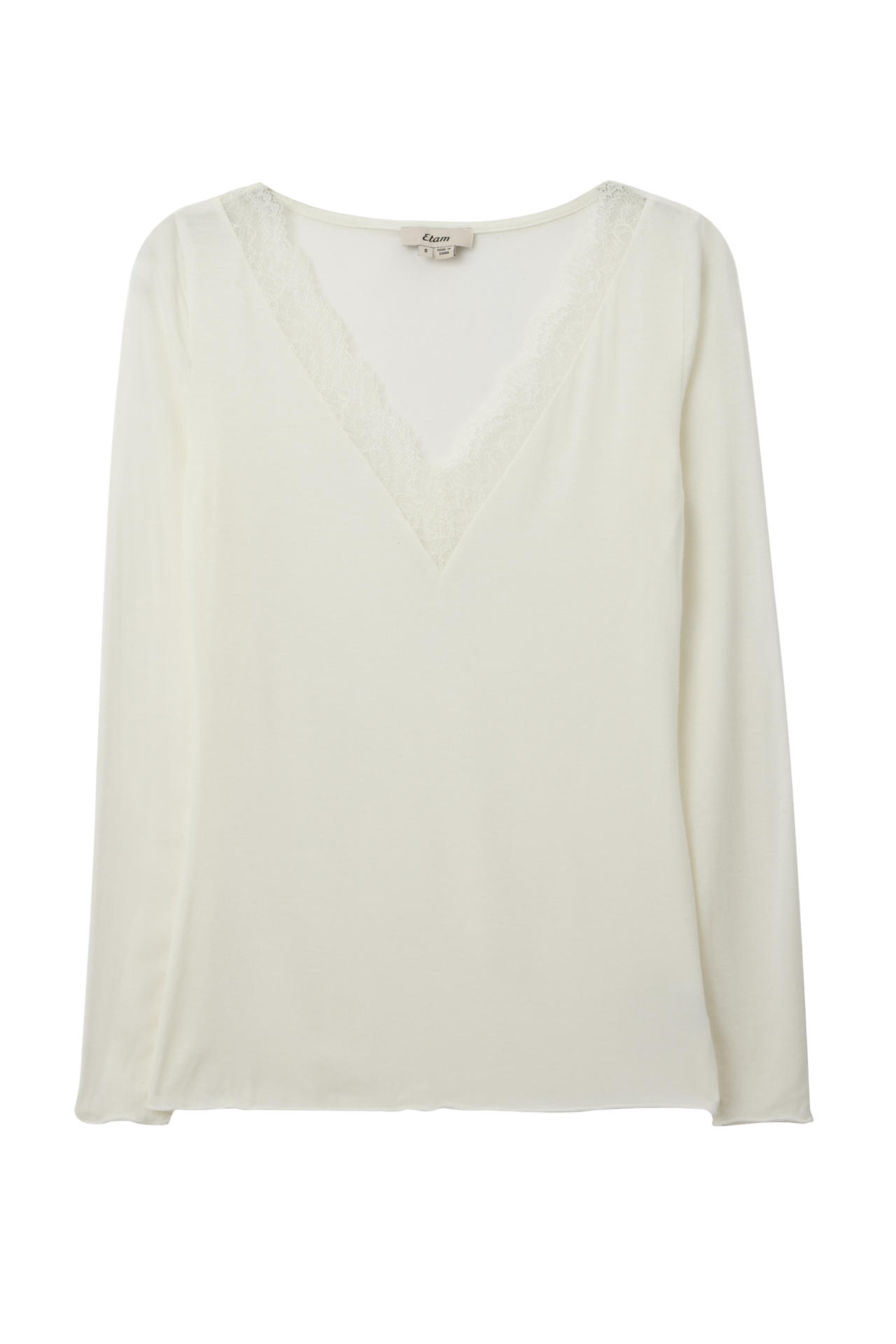 ETAM-WARM ME UP-TSHIRT ML-COL V-ECRU-AH25